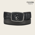 Cinturón vaquero Orígenes para caballero en piel genuina de avestruz sobre la hebilla y en la punta de la tira y piel de bovino. Con hebilla forrada en piel de avestruz con aplicación metálica doble de monograma Cuadra. Con forro en piel de bovino.