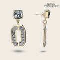 Aretes para dama en latón con baño de oro. Con aplicaciones en piel genuina de pitón y cristales auténticos swarovski. Altura aproximada del arete: 4.3 cm. Tamaño aproximado de los cristales: 1 cm.
