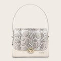 Bolso de hombro en piel genuina de pitón y piel de bovino para dama. Presenta aplicación metálica del logotipo Cuadra. La parte interna presenta un compartimento y un bolsillo asegurado con cierre. Con asa corta. Asegurado con broche metálico