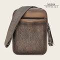 Bandolera para caballero en piel genuina de tiburón y piel de bovino. Presenta contraste de texturas y aplicación metálica del logotipo Cuadra. Con dos compartimentos asegurados con cierre, el de mayor tamaño cuenta con un bolsillo interno. Con asa de textil ajustable con grabado del logotipo Cuadra.