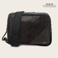 Bandolera para caballero en piel genuina de elefante y piel de bovino. Al frente presenta perforaciones y aplicación metálica del logotipo Cuadra. Cuenta con dos compartimentos con cierre, cuatro espacios para tarjetas y dos bolsillos internos, uno de ellos con cierre. La parte trasera cuenta con un bolsillo con cierre. Con asa de textil ajustable con grabado del logotipo Cuadra.