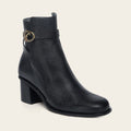 Botín de vestir para dama en piel genuina de venado y piel de bovino. Presenta correa decorativa alrededor del tobillo con herraje del monograma Franco Cuadra y sombreado a mano. Ajustada con cierre interno. Con suela de cuero de doble densidad con injerto de TPU.