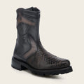 Bota biker en piel genuina de pitón y piel de bovino para caballero. Al costado presenta detalles de grabado láser y aplicación metálica con grabado del logotipo Cuadra sobre una aplicación de piel genuina, con contraste de texturas y color. Ajustado con cierre interno. Cuenta con las nuevas tecnologías: planta Ortholite y plantilla flex removible Con suela XL EXTRALIGHT® compuesta de EVA, reconocida por su ligereza, resistencia al calor, flexibilidad y confort.