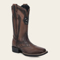 Bota rodeo en piel genuina de bovino para caballero. Presenta aplicaciones de KPU en motivos geométricos, tejido a modo artesanal en alto relieve, aplicación metálica doble del logotipo Cuadra, grabado láser con el logotipo Cuadra y aplicación del logotipo de la marca en alto relieve en orejas. Cuenta con las nuevas tecnologías: platilla flexrider, planta Ortholite y suela flexrider, que le dan mayor ligereza, confort, transpirabilidad y amortiguación.