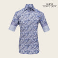 Camisa Cuadra para caballero. Presenta estampado de azulejos artesanales. Con botones en mangas y al frente. Hecha 100% de algodón.
