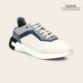 Tenis ultraligeros para caballero en piel genuina de venado y piel de bovino. Presentan texturas y colores contrastantes, bordado capitonado, aplicaciones en acabado nobuk, con aplicación del monograma y grabado de Franco Cuadra al costado y sobre la lengüeta. Ajustados con agujetas. Suela bicolor de TPU con entresuela de poliuretano Cushion, que brinda comodidad, flexibilidad y una sensación de ligereza al caminar.