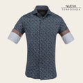 Camisa Cuadra para caballero. Presenta estampado de azulejos artesanales. Con botones en mangas y al frente. Hecha 100% de algodón.