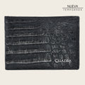 Cartera en piel genuina de fuscus para caballero. Al Presenta aplicación metálica del logotipo y acabado pintado a mano. En su interior cuenta con ocho espacios para tarjetas y dos espacios para efectivo.