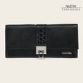 Cartera para dama en piel genuina de alligátor y piel de bovino. Al frente, presenta aplicación metálica del logotipo Cuadra y aplicación de piel genuina de alligátor. En su interior cuenta con seis espacios para tarjetas, un espacio para efectivo y un monedero con cierre. Asegurada con broche.