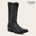 Bota vaquera Orígenes para caballero en piel genuina de fuscus y bovino. Presenta herraje metálico del monograma de la marca sobre piel genuina de fuscus, bordado en alto relieve, tejido artesanal y grabado láser en motivos orgánicos. Cuenta con el logotipo Cuadra en el costado y en la parte trasera, la leyenda “Cuadra Tradicional”. Con piel genuina de fuscus en las orejas. Suela de cuero con injerto de TPU antiderrapante.