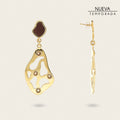 Aretes para dama de latón con baño de oro. Presenta aplicaciones en piel genuina de carunga y cristales auténticos Swarovski®. Altura aproximada: 6 cm.