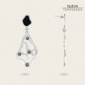 Aretes para dama de latón con baño de plata. Presenta aplicaciones en piel genuina de carunga y cristales auténticos Swarovski®. Altura aproximada: 6 cm.