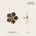 Aretes para dama de latón con baño de oro. Presentan aplicación de piel genuina de pitón y resina. Tamaño aproximado del arete 2cm.
