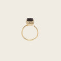 Anillo ajustable para dama de latón con baño de oro. Presenta aplicación de piel genuina de mantarraya pulida y cristales auténticos.
