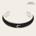 Pulsera para caballero en piel genuina de lizard. Presenta detalle de costuras y componente central "C" en acabado platino. Diámetro aproximado: 6.3 cm. Altura aproximada: 1.2 cm.