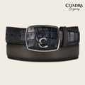 Cinturón vaquero para caballero en piel genuina de fuscus sobre la hebilla y en la punta de la tira y piel de bovino. Con hebilla de 45 mm forrada en piel de fuscus con aplicación metálica de monograma Cuadra. Con forro en piel de bovino con serigrafía de logotipo Cuadra.