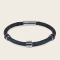 Pulsera para caballero en piel genuina de lizard. Presenta detalles en piel genuina de bovino. Con cuentas metálicas forradas en piel genuina y componente Cuadra en acabado platino. Ajustada con broche de imán de acero inoxidable. Diámetro aproximado: 6.3 cm