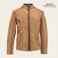 Chamarra para caballero en piel genuina de cordero. Presenta acabado nobuk, dos bolsillos laterales asegurados con imán, un bolsillo interno y aplicación metálica del monograma Cuadra. Ajuste frontal con cierre. Sin forro.