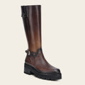 Bota alta ultra ligera para dama en piel genuina de venado. Presenta sombreado a mano, una correa decorativa alrededor del tobillo con hebilla y una en la parte superior decorada con fino herraje del monograma Franco Cuadra. Presenta suela EXTRALIGHT® compuesta de EVA, reconocida por su ligereza, resistencia al calor, flexibilidad y confort.. Ajustada con cierre interno.
