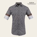 Camisa Cuadra para caballero. Presenta estampado de azulejos artesanales. Con botones en mangas y al frente. Hecha 100% de algodón.