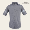 Camisa Cuadra para caballero. Presenta estampado de azulejos artesanales. Con botones en mangas y al frente. Hecha 100% de algodón.