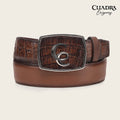 Cinturón vaquero Orígenes para caballero en piel genuina de fuscus sobre la hebilla y en la punta de la tira y piel de bovino. Con acabado pintado a mano sobre la piel exótica y sombreado. Hebilla forrada en piel de fuscus con aplicación metálica doble de monograma Cuadra. Con forro en piel de bovino.