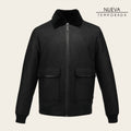 Chamarra para caballero en piel genuina de cordero. Presenta dos bolsillos al frente, elástico en puños y borde inferior, tres bolsillos internos. Ajustada con cierre frontal.
