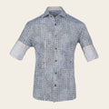 Camisa Cuadra para caballero. Cuenta con estampado en motivos geométricos y contraste de color. Ajuste por medio de botones en mangas y parte frontal. Bordado interno del logotipo Cuadra en alto relieve.