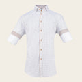 Camisa Cuadra para caballero 100% algodón. Presenta sutil estampado con tejido en color contrastante y estampado en la parte interna del cuello y mangas. Ajustada con botones.
