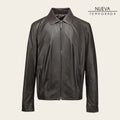 Chamarra para caballero en piel genuina de cordero. Presenta aplicación de piel de cocodrilo en bolsillos laterales y cuello. Ajustada con cierre frontal. Con forro ligero.