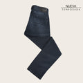 Jeans Cuadra para caballero corte recto. La parte trasera cuenta con aplicación del logotipo Cuadra sobre piel genuina.
