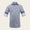 Camisa Cuadra para caballero. Presenta textura geométrica en color azul. Con logotipo Cuadra bordado en la parte interna.