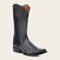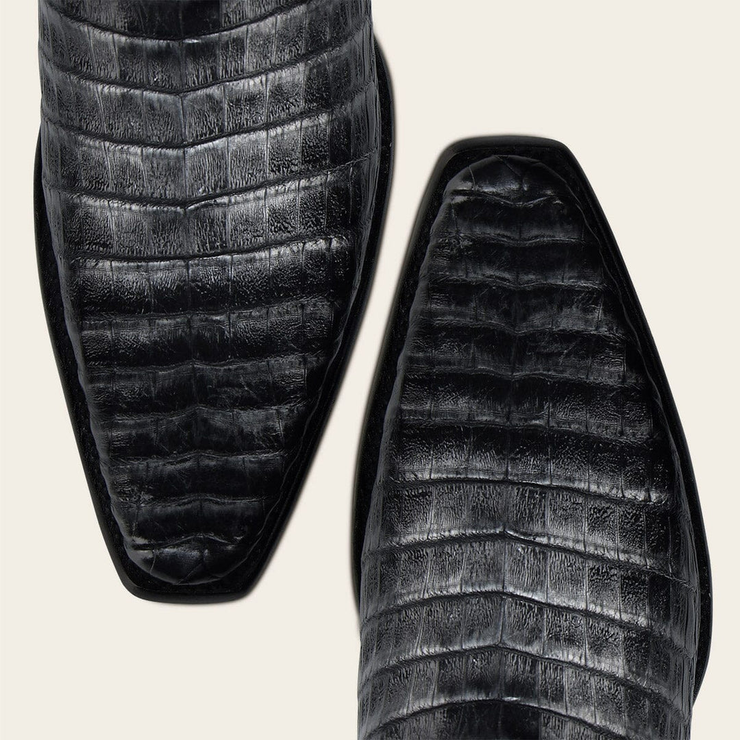 Bota vaquera para caballero en piel genuina de fuscus y piel de bovino. Sobre el tubo presenta logotipo de KPU microinyectado en alto relieve, tejido, grabado láser y aplicaciones de PVC. Con orejas en los costados con aplicación de PVC de logo “Goodyear Welt”. Cuenta con las nuevas tecnologías: planta Ortholite, plantilla flex removible y tubo con entretelas suaves. Con suela de cuero con injerto de TPU antiderrapante.