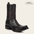 Bota urbana en piel genuina de alligator y piel de bovino para caballero. Presenta tejido artesanal, acabado vintage elaborado con piel trabajada artesanalmente con texturas y efectos únicos, oreja con aplicaciones metálicas con el monograma Cuadra y tubo suave diseñado con entretelas. Ajustada con cierre interno. Cuenta con la nueva tecnología: planta Ortholite, que le da mayor ligereza, confort, transpirabilidad y amortiguación. Con suela track antiderrapante.