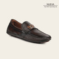 Driver para caballero en piel genuina de nilóticus y piel de venado. Presenta herraje metálico del monograma sobre una aplicación en piel de nilóticus, detalles de brocado, sombreado a mano y frente cosido a mano. Con forro en piel genuina que aporta mayor suavidad y suela tipo gemini, para mayor ligereza, tracción y comodidad.