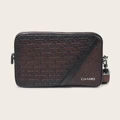 Documentera para caballero en piel genuina de fuscus y piel de bovino. Presenta detalles de alto relieve al frente, aplicación metálica de logotipo Cuadra y bolsillo con cierre en la parte trasera. En su interior cuenta con ocho espacios para tarjetas y dos compartimentos, uno de ellos con cierre. Incluye asa corta desmontable. Asegurada con cierre. Color azul