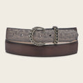 Cinturón para dama en piel genuina de carunga y piel de bovino. Hebilla de 33mm personalizada, con motivos de cadena. Con forro en piel de bovino.