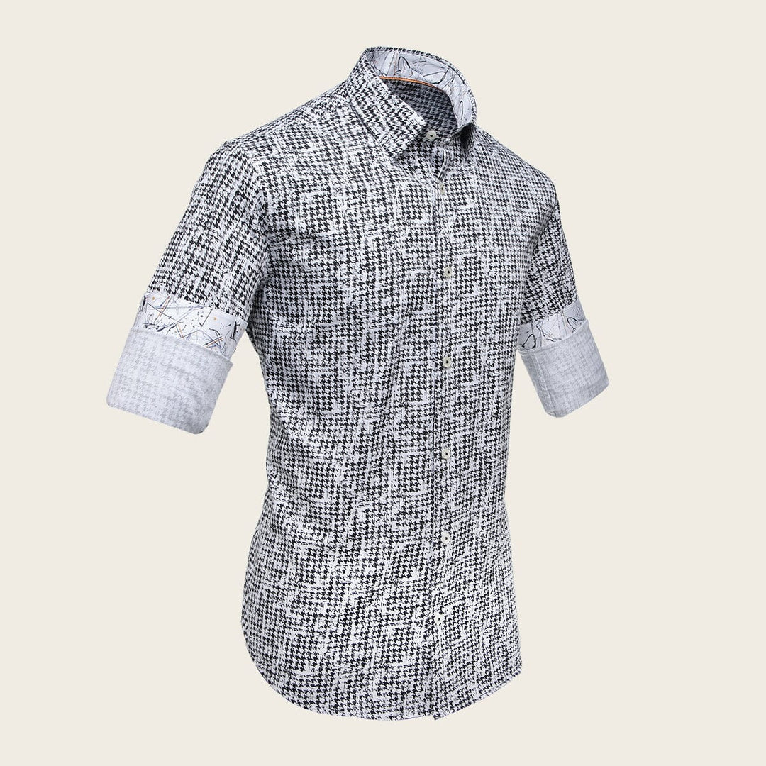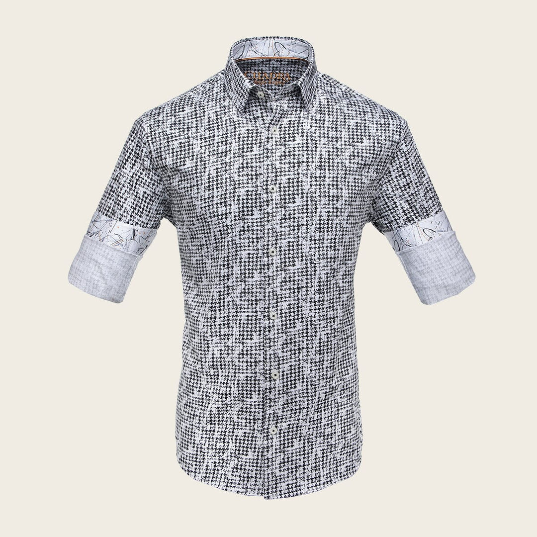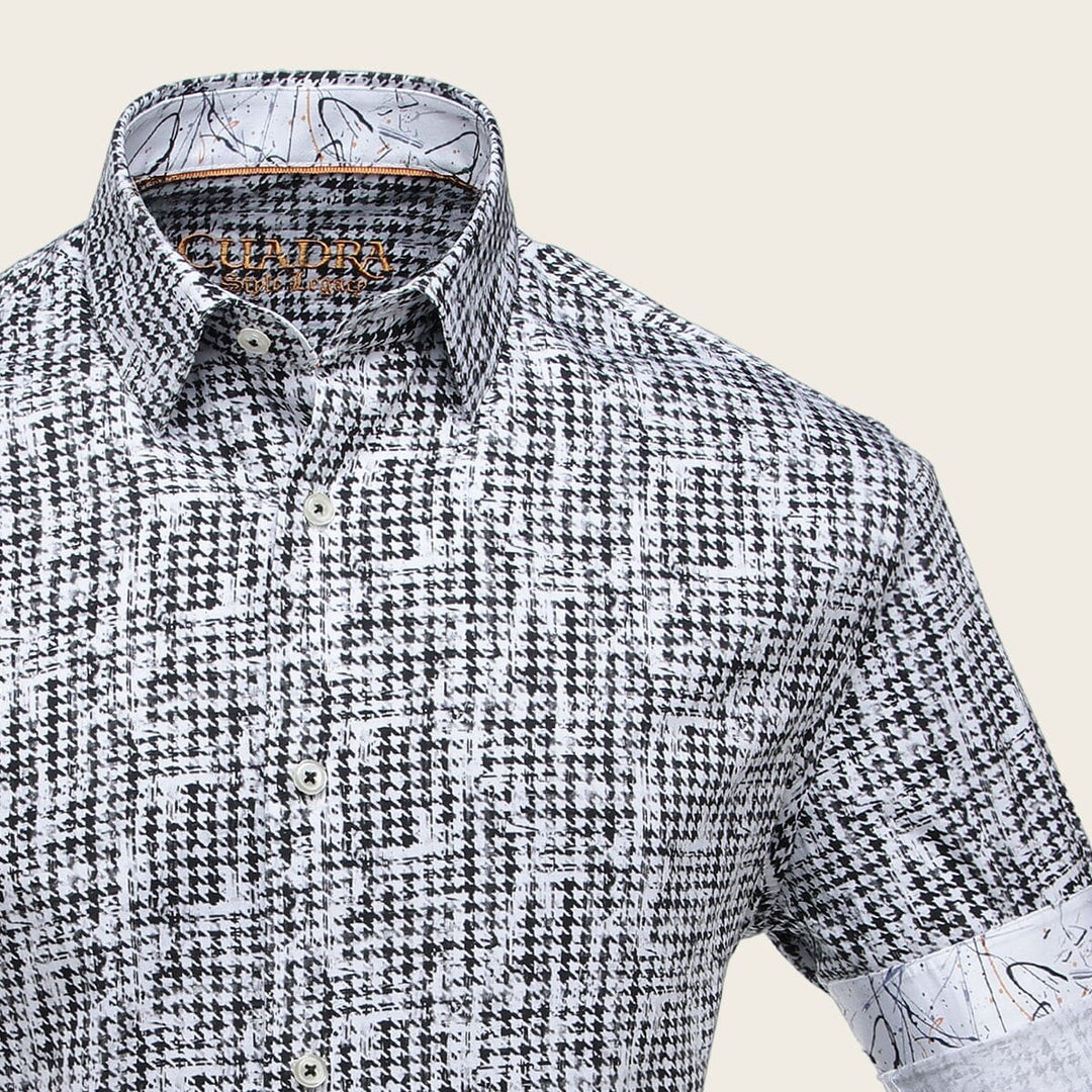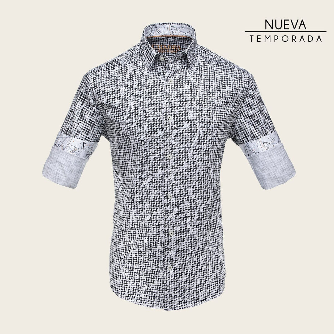 Camisa Cuadra para caballero 100% algodón. Presenta estampado en contraste de color. Ajuste con botones frontales y en mangas.