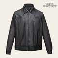 Chamarra en piel genuina de ovino ultrasuave para caballero. Presenta aplicaciones metálicas del monograma de Cuadra. Con dos bolsillos en el pecho y dos laterales asegurados con imanes. En su interior cuenta con un bolsillo en piel genuina asegurado con broche y con forro textil ligero. Ajustada con botones con el logotipo de Cuadra en puños y parte frontal.