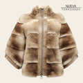 Chamarra para dama en pelo genuino de visón. Presenta dos bolsillos laterales asegurados con imán y piel genuina de pitón al frente y en la parte inferior de las mangas. Ajustada con cierre frontal.
