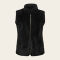 Chaleco para dama en piel genuina de cachemira. Presenta pelo de visón en la parte frontal y lana de ovino en la parte trasera. Sin forro. Ajustado con cierre.