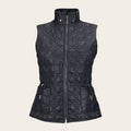 Chaleco para dama en piel genuina de ovino. Cuenta con dos bolsillos laterales, en los cuales se encuentran dos bolsillos más pequeños ajustados con elástico. Aplicación metálica de logotipo Cuadra. Ajuste frontal por medio de cierre