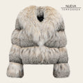 Chamarra para dama en pelo genuino de lince en contraste de color. Diseño sin bolsillos. Ajustada con broche.