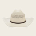 Sombrero Cuadra de paja tipo Panama. Con cintillo en piel de venado con estoperoles y aplicación metálica de 3 piezas en forma de venado con rubí y monograma Cuadra. Tafilete en piel de venado. Ala de 4 pulgadas.